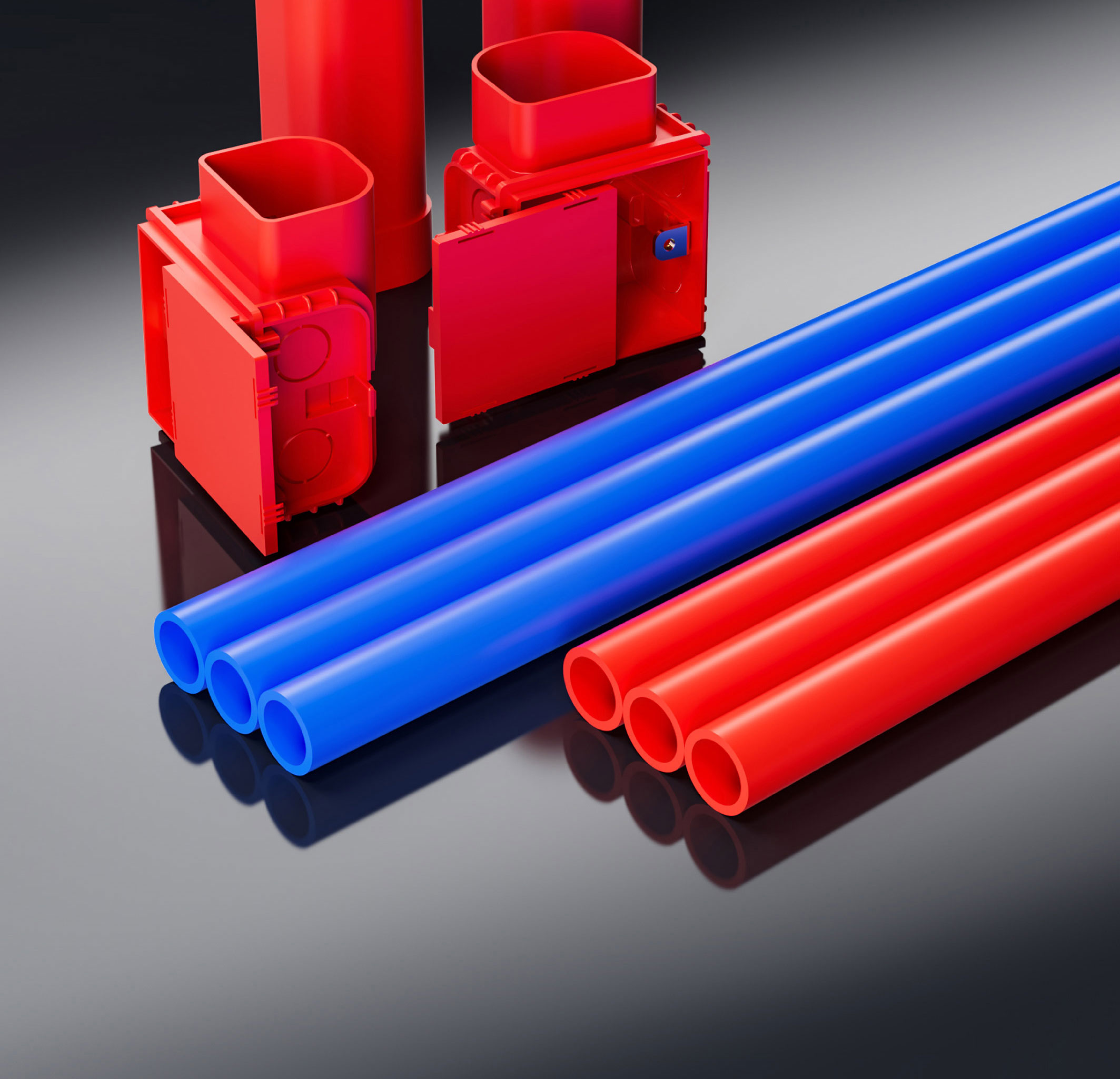 凯发官网强弱电管道系统采用“强电用红线、弱电用蓝线”的设计理念,强弱电易区分,避免互相干扰,且便于识别及维护